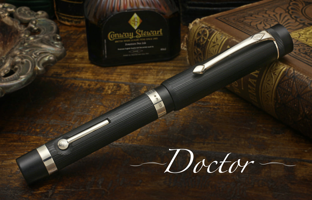 Die Doctor Edition basiert auf unserem beliebten Marlborough Vintage-Modell. Hergestellt aus echtem Ebonit, dem Material der Wahl für Füllfederhalterhersteller bis in die frühen 1930er Jahre. Dieses neue Design wird durch das klassische Nadelstreifen-Gravurmuster entlang der gesamten Länge der Kappe und des Schafts akzentuiert, das durch einen Tiffany-Polierprozess weiter hervorgehoben wird, um ein mattes Finish zu erzielen.
