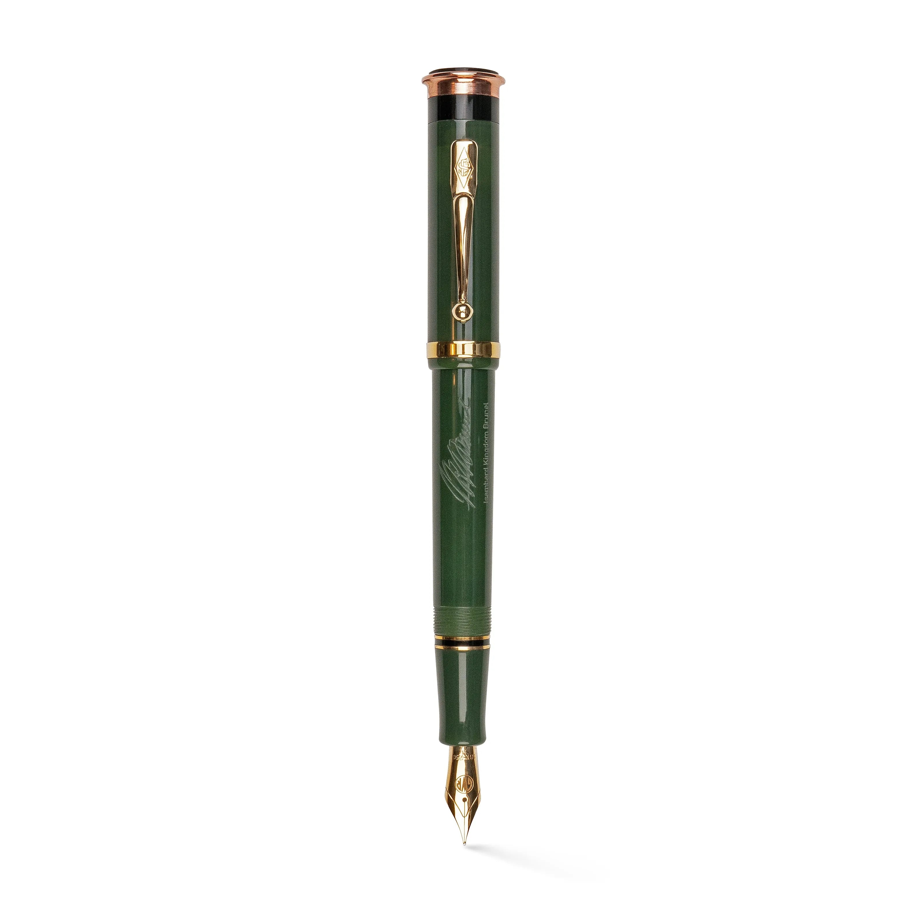 Bei diesem ganz besonderen Stift in limitierter Auflage haben wir das GWR-Logo in unsere 18-Karat-Goldfedern der Größe 6 eingraviert. Diese großen Federn werden von vielen unserer Kunden für ihr butterweiches Schreibgefühl gelobt und sind in den Breiten Extrafein, Fein, Mittel und Breit erhältlich.