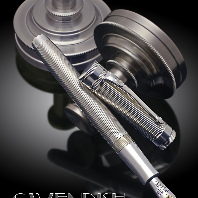 Starting with a rod of solid sterling silver, our pen makers shape the Cavendish into a classic flat-top cap and barrel. Each is then engraved with concentric rings in high relief running the full length of the pen. Set off by brightly polished cap top, cap band, and barrel end, the pattern is both elegant and clean.