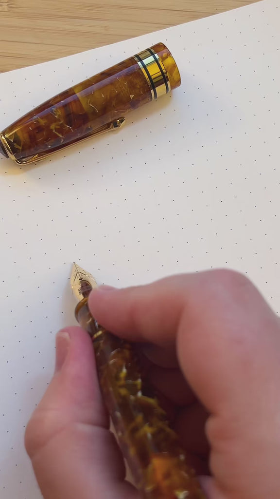 The Conway Stewart Series 58 Amber launches our NEW #5 14ct gold nib; this is a slightly smaller nib that that in the Churchill/Winston range,  but is still a delight to use.