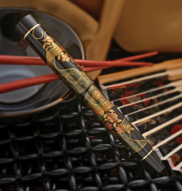El nombre laboral del Sr. Koichiro Okazaki es Kogaku-san. Su obra está pintada a mano alzada sin ningún esquema de diseño ni proceso de serigrafía. Mientras que el 90% de las obras de arte Maki-e producidas actualmente utilizan laca Urushi artificial, Kogaku san utiliza sólo laca Urushi 100% natural, recolectada a mano de los árboles Urushi.