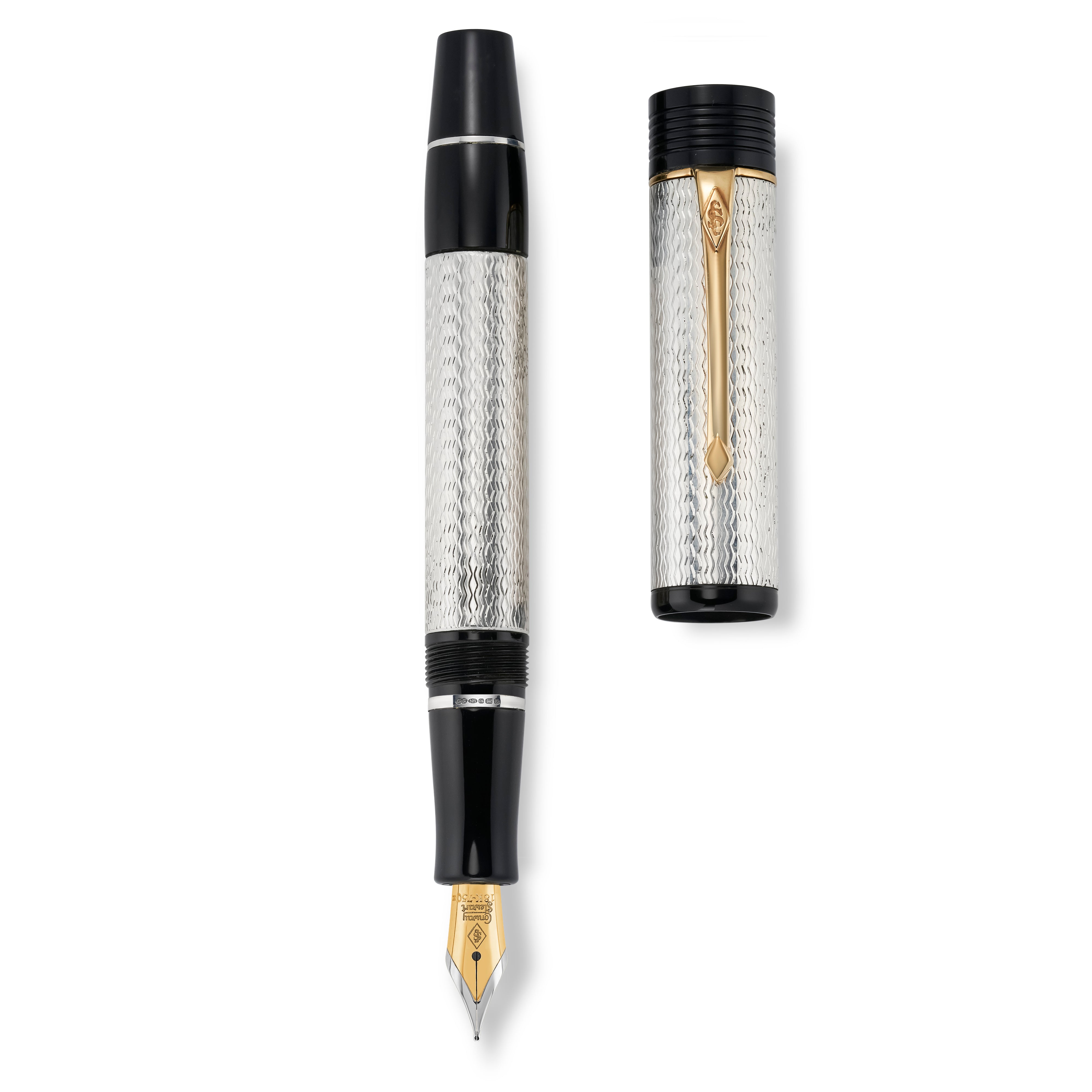 Este bolígrafo tiene un sistema de llenado dual. Está equipado con un convertidor (depósito) que permite al usuario extraer tinta de una botella o, alternativamente, puede quitar el convertidor y utilizar cartuchos de tinta europeos estándar. Todas nuestras plumas estilográficas vienen con 2 cartuchos de cortesía para que pueda comenzar a usarlas de inmediato. Si prefiere utilizar tinta embotellada, le recomendamos nuestra propia gama de tinta de alta calidad, fabricada en Inglaterra y disponible en varios colores.