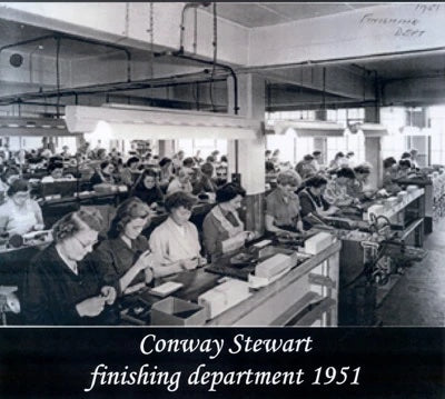 En 1905, Frank Jarvis, 22 ans, et Howard Garner, 28 ans, fondèrent Conway Stewart & Co. au 13 Paternoster Row, à côté de la cathédrale Saint-Paul de Londres. Aujourd'hui, cette zone est connue sous le nom de Place Paternoster après avoir été réaménagée après sa destruction complète lors du Blitz de la Seconde Guerre mondiale. Bien qu'il y ait beaucoup de débats concernant les origines du nom de la société, on pense que le nom « Conway Stewart » dérive d'un numéro de vaudeville populaire de l'époque. Les deux entrepreneurs vendaient à l’origine des stylos importés des États-Unis, mais sont rapidement devenus l’un des plus grands fabricants de stylos. Avant la Seconde Guerre mondiale, Conway Stewart fabriquait et vendait probablement plus de stylos en Grande-Bretagne que les ventes combinées de leurs principaux concurrents, Mabie Todd, De La Rue, Parker et Waterman.
